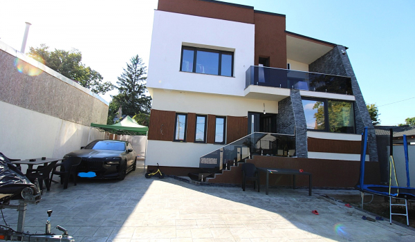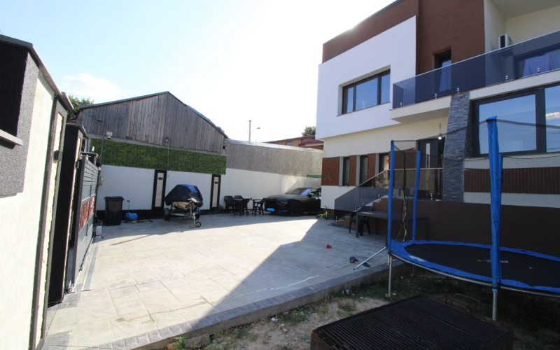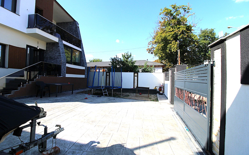 Casa moderna, centrala, constructie noua 2024 – Str. Romana. Va propunem spre vanzare o casa noua, situata in zona centrala, pe str. Romana, construita in 2024, pe structura solida din cadre de beton si zidarie Porotherm. Imobilul se remarca prin arhitectura moderna, compartimentarea practica si dotarile de ultima generatie. Detalii tehnice: Suprafata teren: 330 mp, deschidere 15 m; Suprafata utila: 250 mp; Amprenta la sol: 125 mp; Regim de inaltime: demisol + parter + etaj. Acoperis: tabla tip Lindab Izolatie: polistiren 10 cm Compartimentare: Demisol: camera de 40 mp (spatiu multifunctional) Parter: living spatios, bucatarie moderna, baie; Etaj: 3 dormitoare, 2 bai; Dormitor matrimonial cu dressing, baie proprie si balcon; Dormitor secundar cu dressing; Dormitor simplu. Dotari si facilitati: Incalzire in pardoseala, centrala termica pe gaz Racordata la toate utilitatile: curent, apa, gaze, canalizare Mobilata si utilata complet (se vinde „la cheie”) Sistem de supraveghere video Curte amenajata cu alei si gazon Parcare in curte pentru 3 autoturisme Localizare: Proprietatea se afla intr-o zona centrala, aproape de: centre comerciale scoli si gradinite zone verzi si restaurante locuri de agrement Alte avantaje: Se accepta orice forma de creditare Constructie noua, finalizata si pregatita pentru mutare imediata