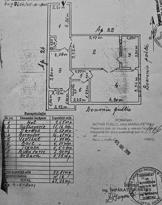 Apartament cu 2 camere, Semidecomandat, in zona Gradina Publica, situat la etajul 4/4, cu suprafata de 68 de mp2, centrala, termopan.
