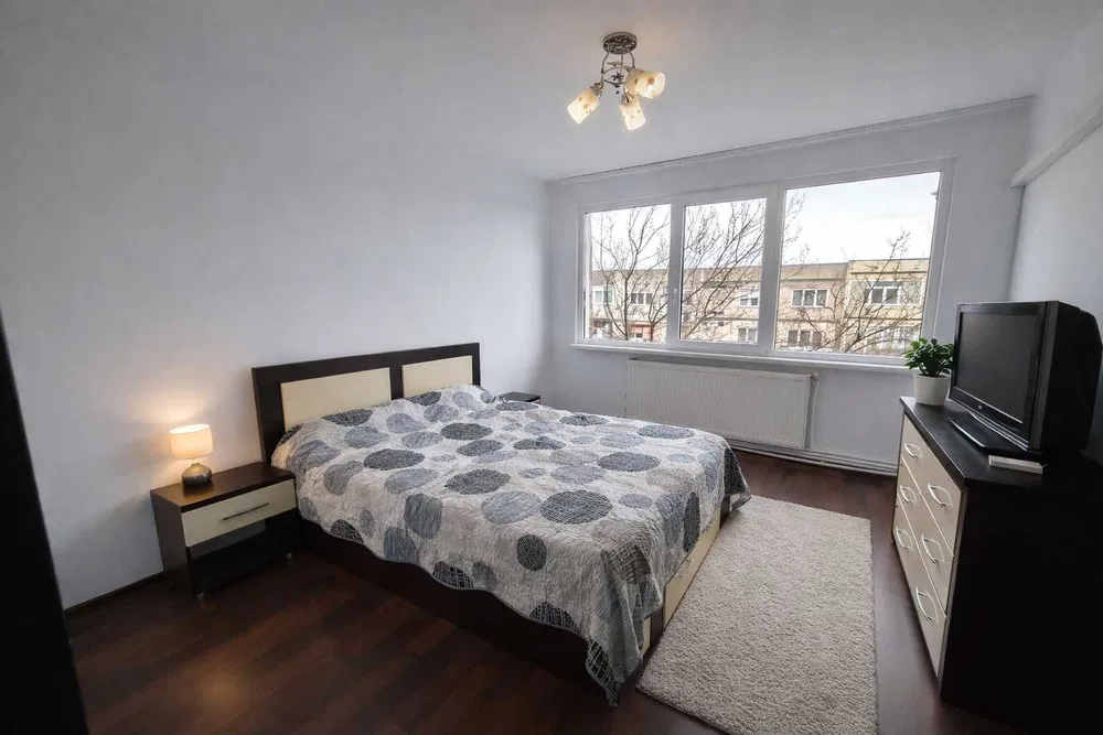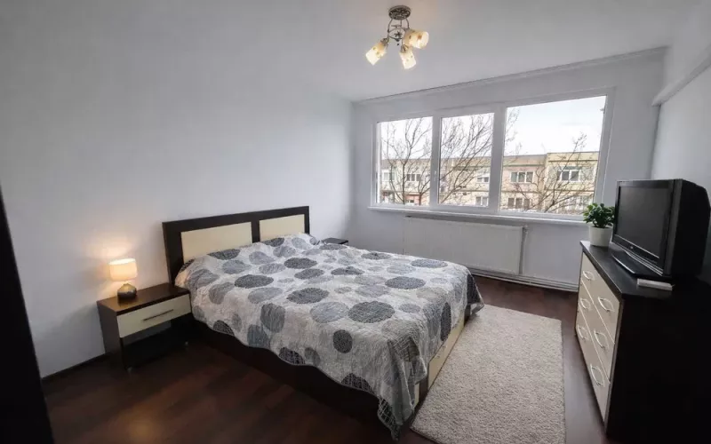 Apartament cu 3 camere, Semidecomandat, in zona Micro 16, situat la etajul 4/4, cu suprafata de 64 de mp2, centrala, termopan, izolatie.