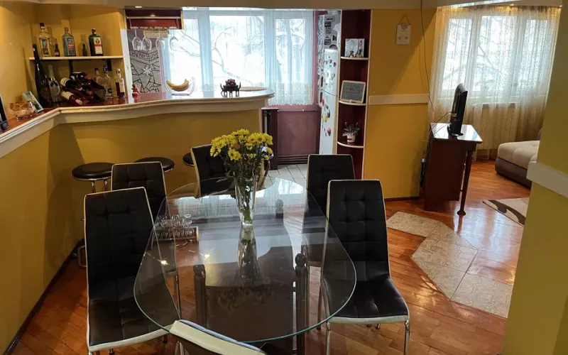 Practic Imobiliare va ofera spre vanzare un apartament cu 3 camere, decomandate, situat la etajul 2 din 4, intr-un imobil construit in anul 1982. Proprietatea se afla in zona Ultimu Leu si are o suprafata de 70 mp. Apartamentul este compus din 2 dormitoare, living open space cu bucataria, bucatarie, o baie si un balcon. Imobilul este racordat la curent electric, apa, canalizare si gaze. Incalzirea si apa calda se obtin cu ajutorul centralei termice. Are tamplarie PVC cu geam termopan si izolatie. Proprietatea este renovata si se preda mobilata si utilata complet. In imediata apropiere intalnim: zone comerciale, scoli, zone verzi, restaurante, zone de agrement. Informatiile tehnice au caracter orientativ, ele fiind preluate de la proprietari. Se accepta credit bancar Cand ne contactati va rugam sa ne spuneti ID- ul intern al proprietatii: 15395.