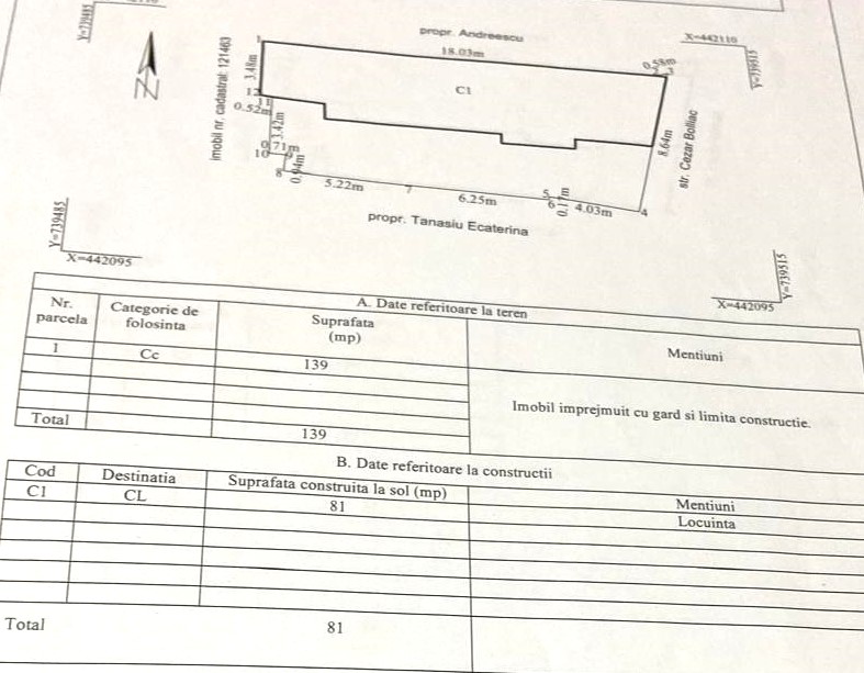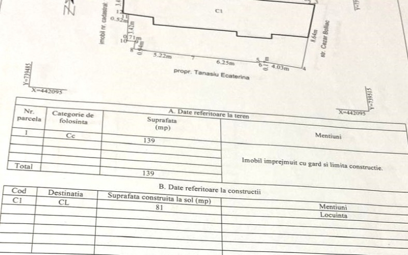 Casa in zona Port (Cezar Boliac) construita pe o structura din caramizi, este acoperita cu tabla tip Lindab si izolata cu polistiren de 10 cm. Terenul aferent constructiei este in suprafata de 139 mp cu o deschidere de 8,64 m. Imobilul are o suprafata de 81 mp. Casa este dispusa pe parter si avem 3 camere, bucatarie, hol si baie. Casa este racordata la: curent electric, apa si canalizare. Gazele sunt trase in fata portii. Curtea interioare este amenajata cu aleii si pavele. Proprietatea are in imprejurimi zone comerciale, scoli, zone verzi, restaurante, zone de agrement.
